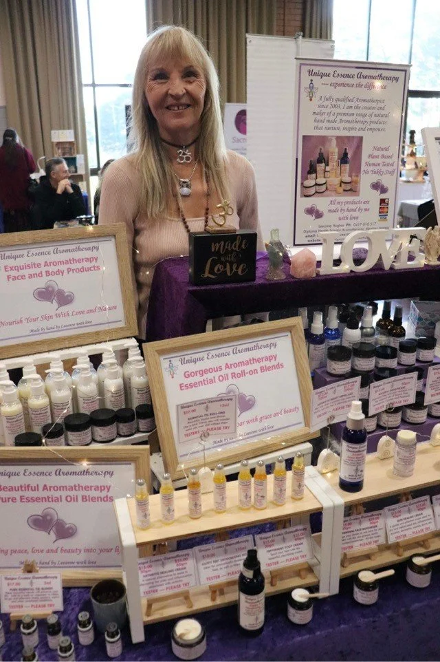 A range of handmade and homemade Aromatherapy products, including 5ml pure blends, 10ml roll-on blends, face creams, arthritis cream, hand and body lotions, aromatic room and body sprays, deodorant, insect repellant, massage oil and healing balms (muscle, chest, lip)